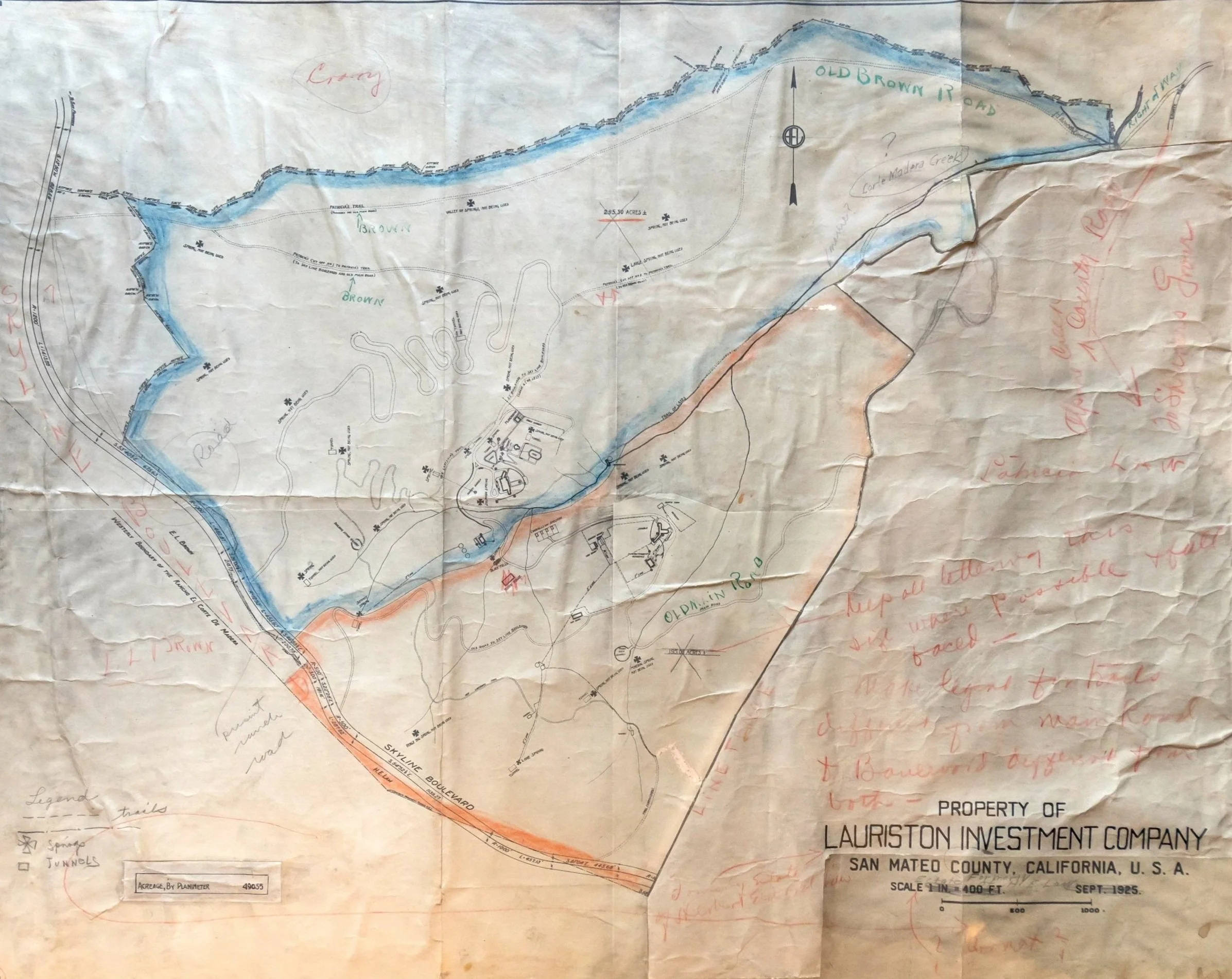 Portola Valley’s rugged landscape is defined by rolling ridgelines and water carved gulches that once harbored gold rush sawmills. Obscure placenames were extracted from historical documents, expanding on familiar nomenclature.